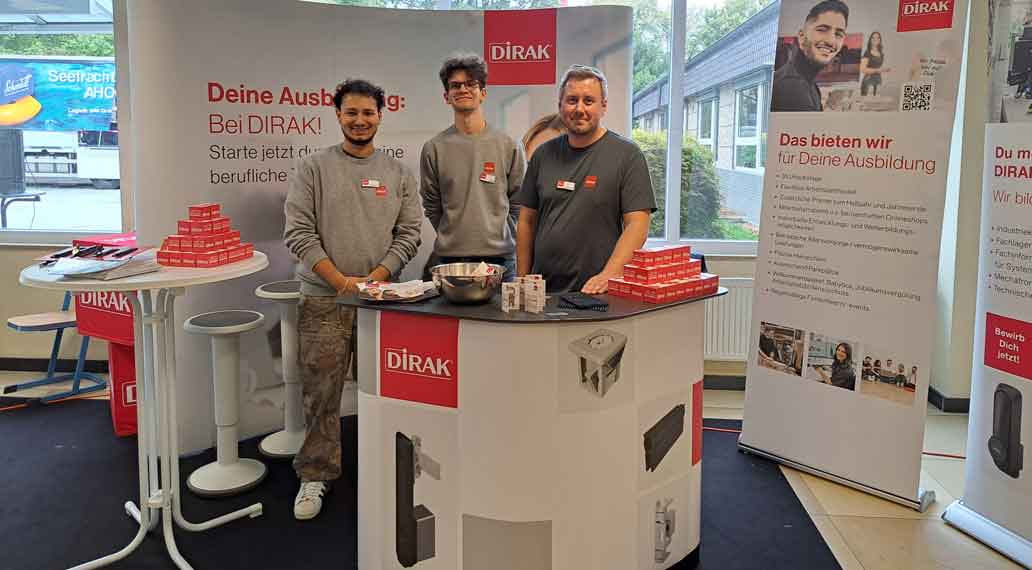 Auch im kommenden Jahr wird DIRAK wieder auf zahlreichen Ausbildungsmessen und Azubi-Speeddatings in der Region vertreten sein. Ob in Schulen, auf Berufsinformationsbörsen oder bei regionalen Karrieretagen – wir freuen uns auf viele persönliche Gespräche mit allen, die sich über unsere Ausbildungsmöglichkeiten informieren möchten. Unsere Auszubildenden werden wieder mit dabei sein und aus erster Hand berichten, wie der Start ins Berufsleben bei DIRAK aussieht.