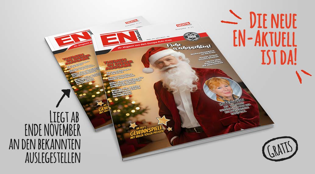 Zum Abschluss lesen Sie wieder die Kolumne vom Schwelmann, inspiriert von der Debatte, die Bundeskanzler Merz kürzlich angestoßen hat und die auch im EN-Kreis für reichlich Gesprächsstoff sorgt. Außerdem warten auf Sie ein weihnachtliches Suchworträtsel, eine Übersicht über alle Weihnachtsmärkte im EN-Kreis sowie aktuelle News und Veranstaltungstipps aus der Region.